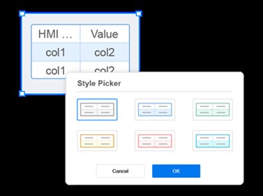 Такие виджеты, как «История тегов», «Отображение сигналов тревоги», «Таблица», «Список параметров» и «Счётчик», предлагают готовые шаблоны оформления, позволяющие добиться единого стиля представления данных.