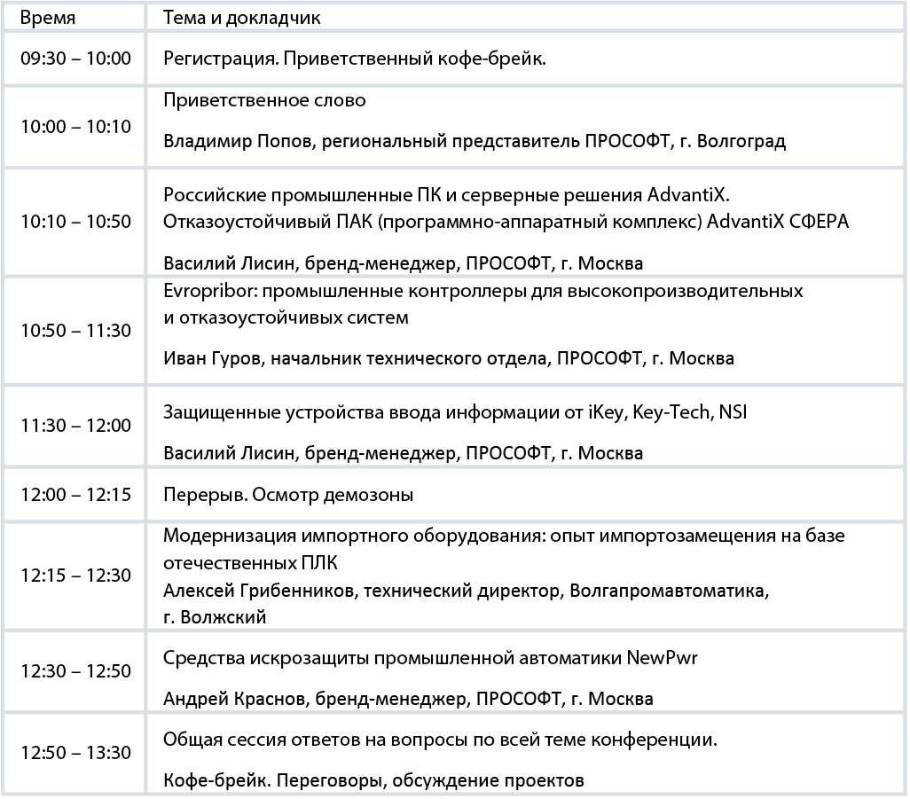 Продолжит программу мероприятия многолетний партнер ПРОСОФТ в сфере системной интеграции — Волгапромавтоматика, который поделится опытом импортозамещения на базе отечественных ПЛК.