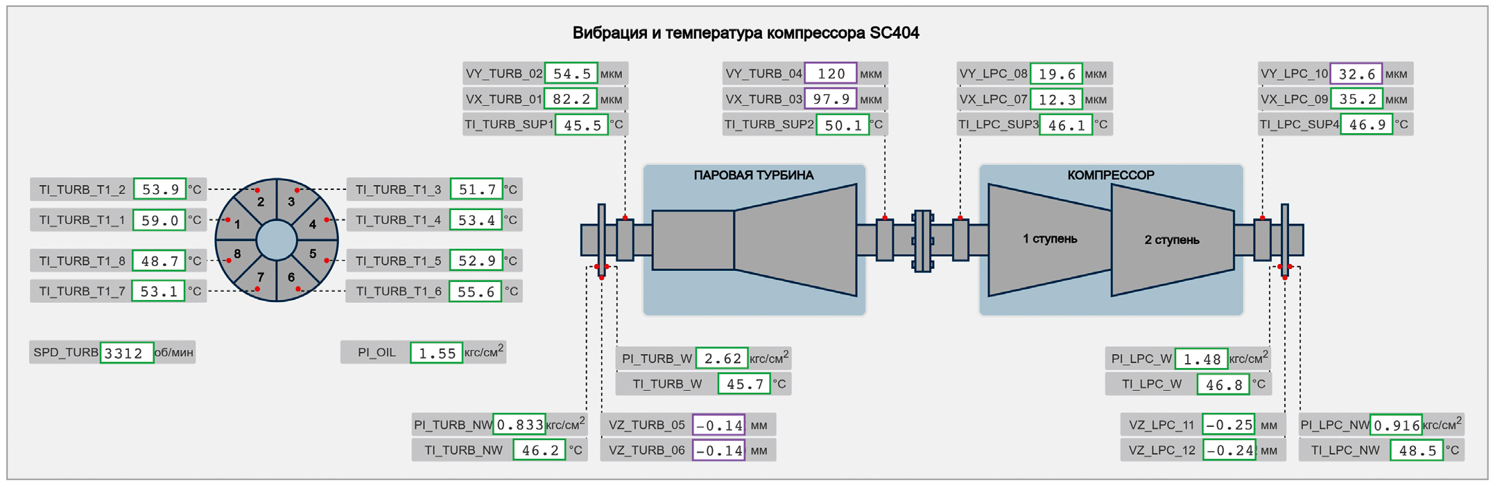 - TI_LPC_SUP3 – температура масла после опорного подшипника вала компрессора;