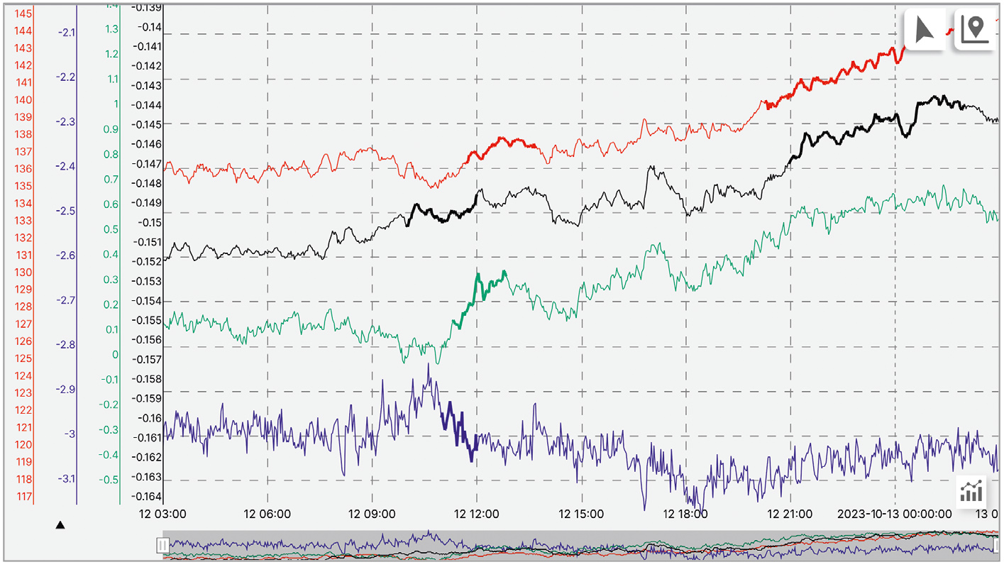 С целью выявления относительно быстрого изменения виброперемещений и осевых сдвигов мы по предоставленным эксплуатирующей организацией историческим данным настроили конфигурации выявления тенденций для всех вибропараметров с глубиной анализа до нескольких часов.