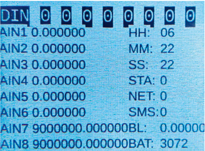 На этом экране можно увидеть состояние цифровых входов DIN1...8, аналоговых входов AIN1...8, значений часов, минут и секунд, а также некоторых системных параметров. Проблема заключается в том, что данную заводскую тестовую программу невозможно сохранить для последующего использования, и она стирается при записи новой программы. Лишь некоторые модели ПЛК позволяют перенести внутреннюю программу на дополнительный носитель памяти.