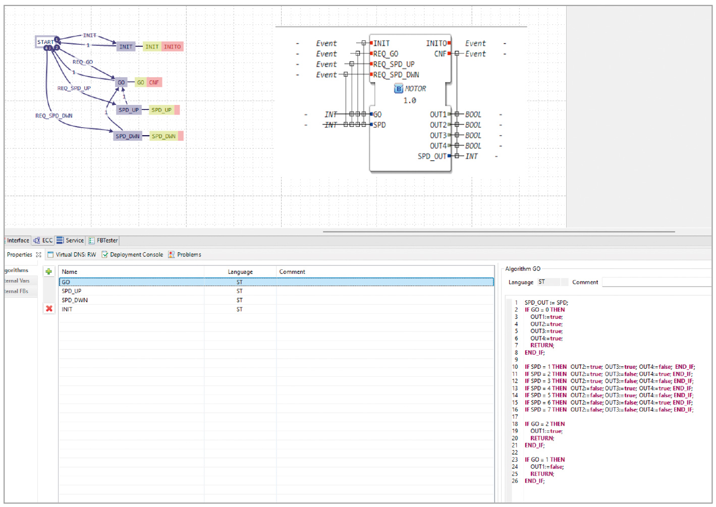 Типовой ФБ может содержать несколько алгоритмов, разработанных на привычном языке структурного текста (ST) стандарта IEC 61131-3.