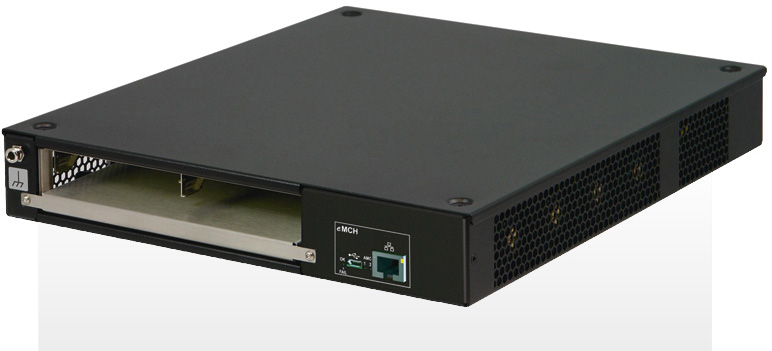 Можно построить эту версию шасси и для большего количества модулей, но поскольку eMCH-модуль не оснащён функцией переключения, все связи между модулями будут выполнены как соединение точка–точка с помощью объединительной платы. Архитектура такого корпуса будет фиксированной для каждой конкретной объединительной платы.