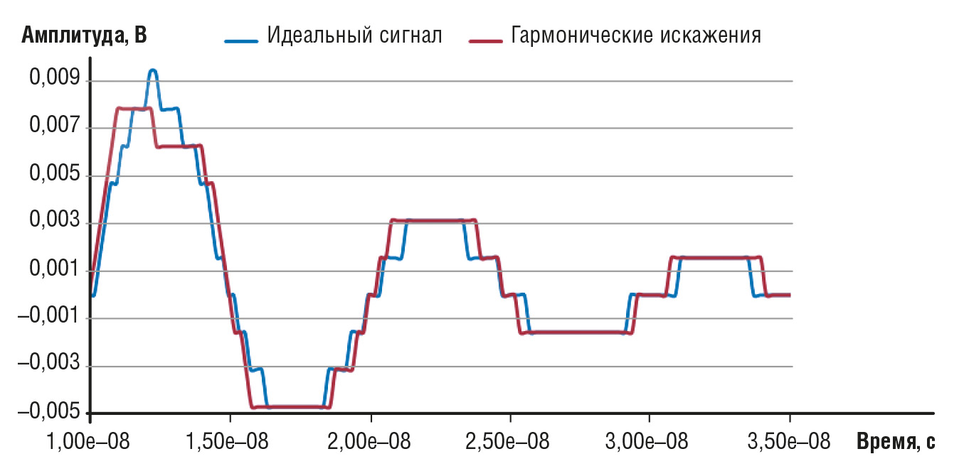 На рис. 9 показан эффект гармонического искажения оцифрованной аналоговой кривой.