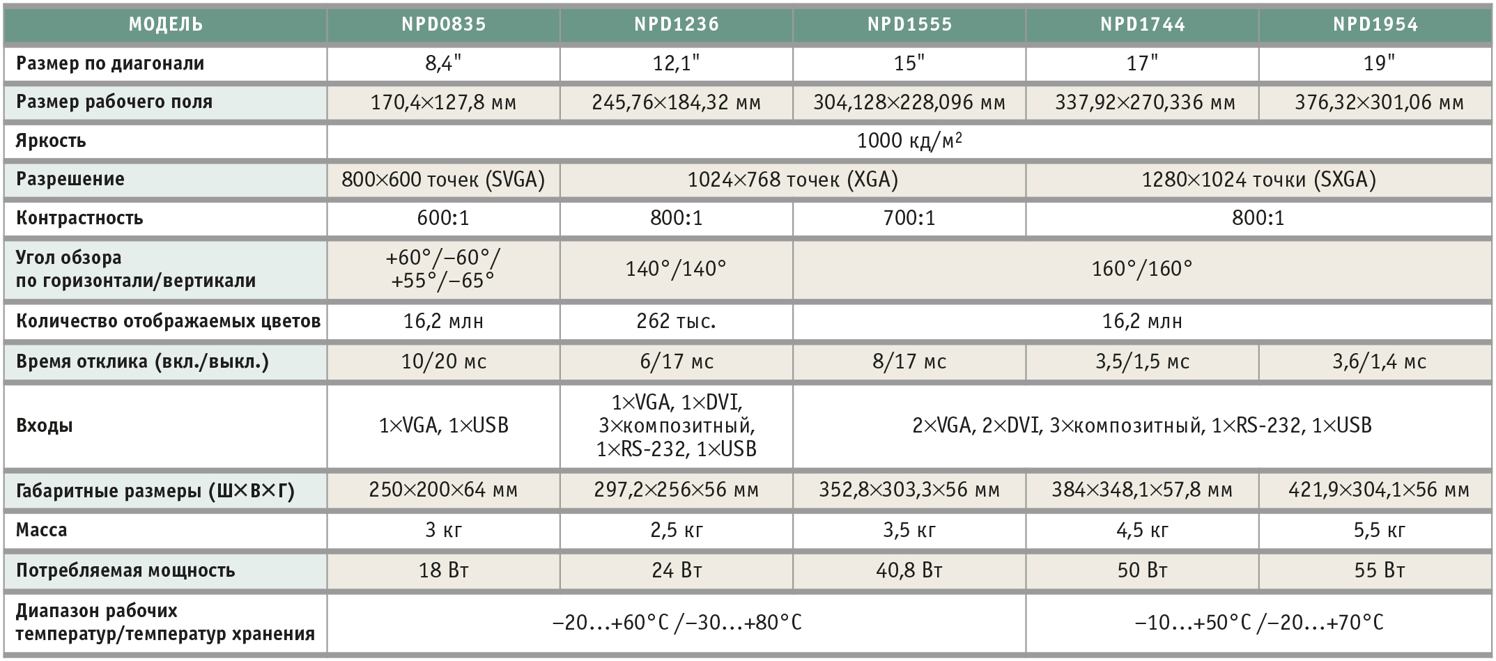 В заключение нужно отметить, что на данный момент дисплеи LITEMAX серии NPD (табл. 3) являются оптимальными решениями для использования в судовой аппаратуре, системах автоматизации газовых и нефтяных разработок, в горнодобывающей отрасли, на транспорте и ВПК. ●