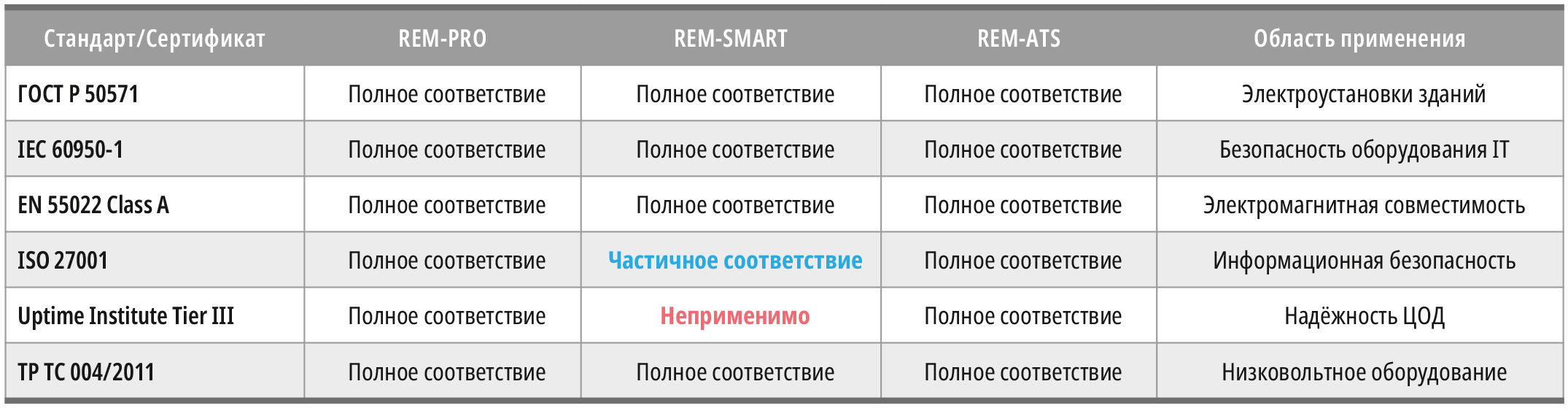 А соответствие серий различным отраслевым сертификатам безопасности представлено в табл. 2.
