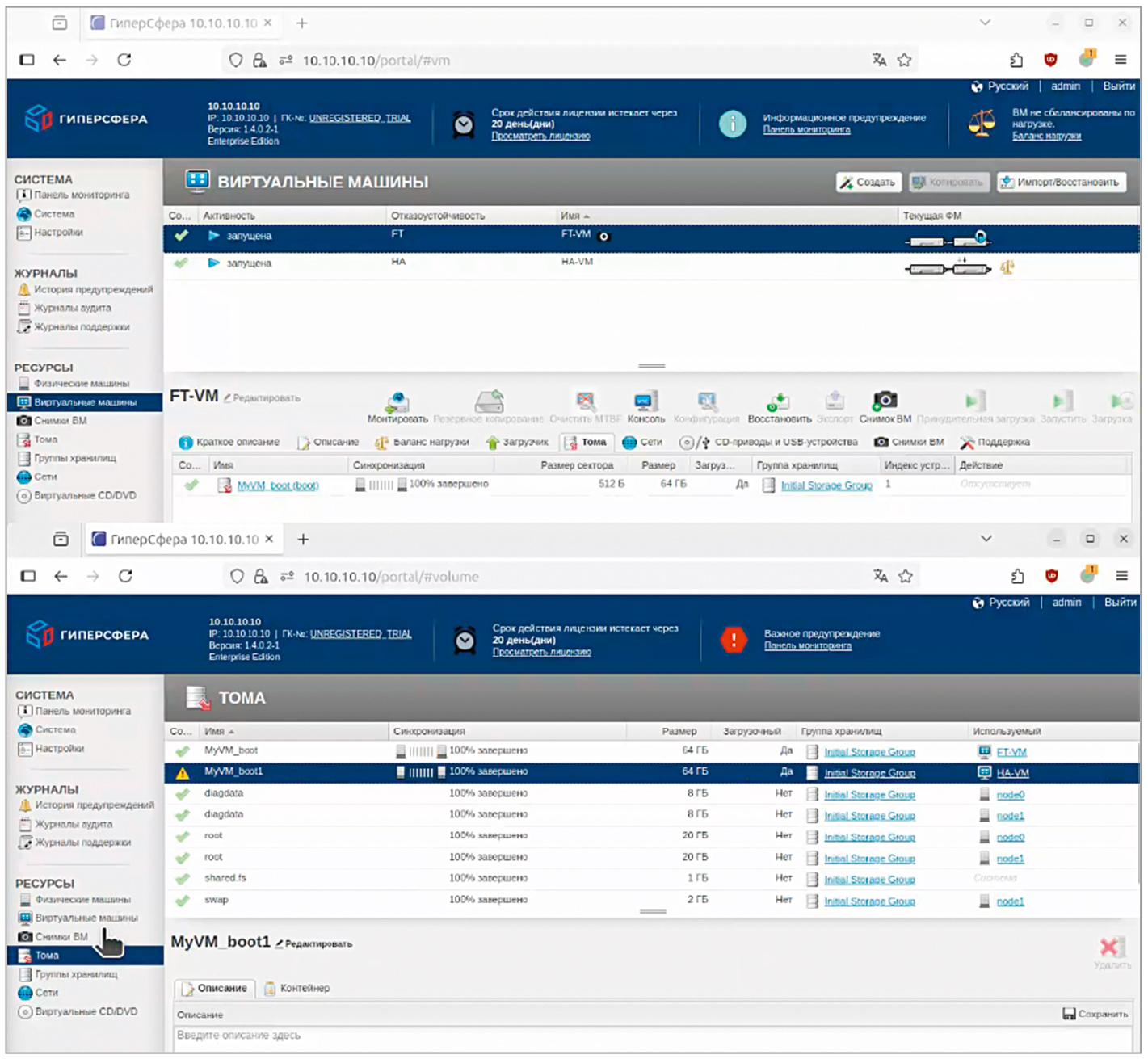 - Простое внедрение и эксплуатация: встроенная отказоустойчивость из коробки. Простая и быстрая настройка кластера HA или FT, не требующая постоянной поддержки ИТ-специалистов.