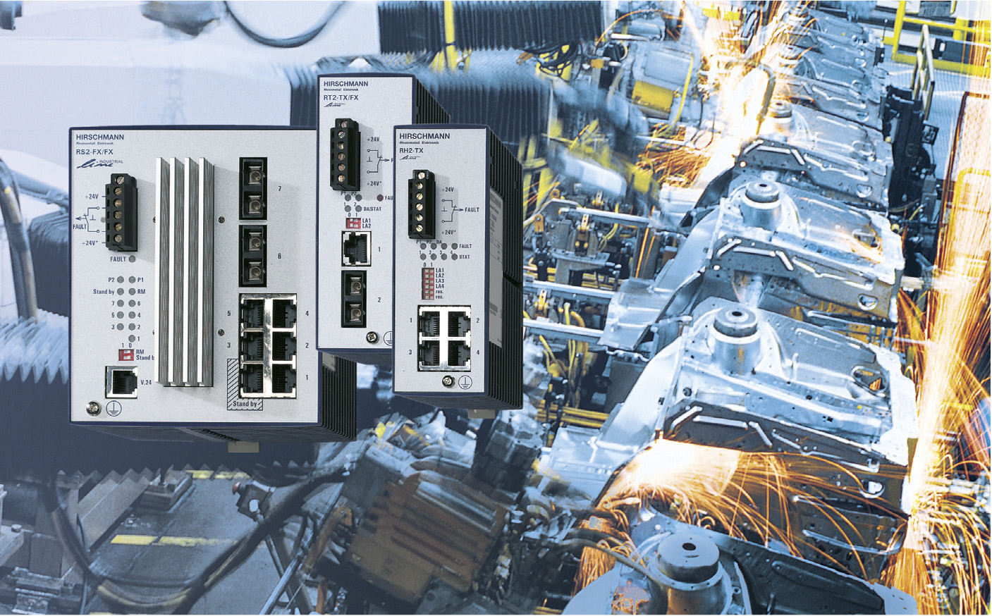 Западногерманская фирма Hirschmann всегда стремилась к применению новейших технологий в сетевом оборудовании. Так, в 1984 году, почти за 10 лет до появления соответствующего стандарта, в университете Штутгарта она впервые создала локальную сеть Ethernet на базе оптоволокна. В 1990 году фирма представила Ethernet с кольцевой топологией, защищенной от отказа узла или обрыва линии. На сегодняшний день Hirschmann выпускает полную гамму оборудования для создания локальных и глобальных сетей сколь угодно сложной структуры, прежде всего для эксплуатации в тяжелых промышленных условиях.