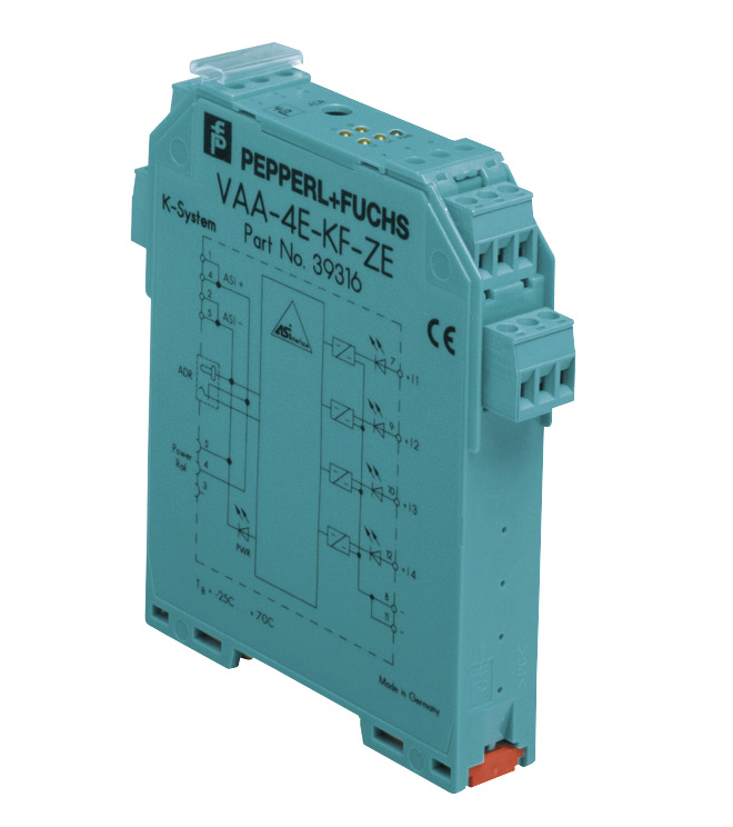 Оконечные устройства (2- и 3-проводное подключение) подсоединяются через разъемы М8. Светодиоды на передней панели модуля позволяют оперативно диагностировать состояние линии AS-интерфейса, дополнительного питания и подключенных оконечных устройств.