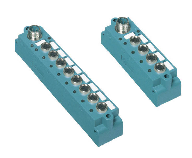 - пассивные распределительные панели VAZ-2T5 и VAZ-T4, позволяющие подключать к панели 5/4 линии AS-интерфейса и дополнительного питания (VAZ-2T5) через стандартный соединитель М12 (степень защиты IP67);