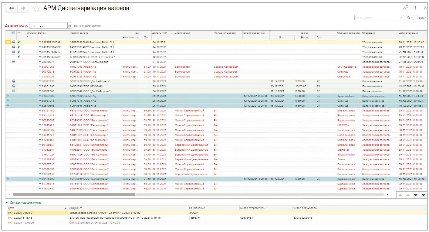 ▪ движения товаров с информацией о перемещении по станциям дислокаций с детальной расшифровкой по номерам вагонов, а также остатке товаров на складе (полученные сведения используются для планирования отгрузок товаров, перевозимых железнодорожным транспортом);