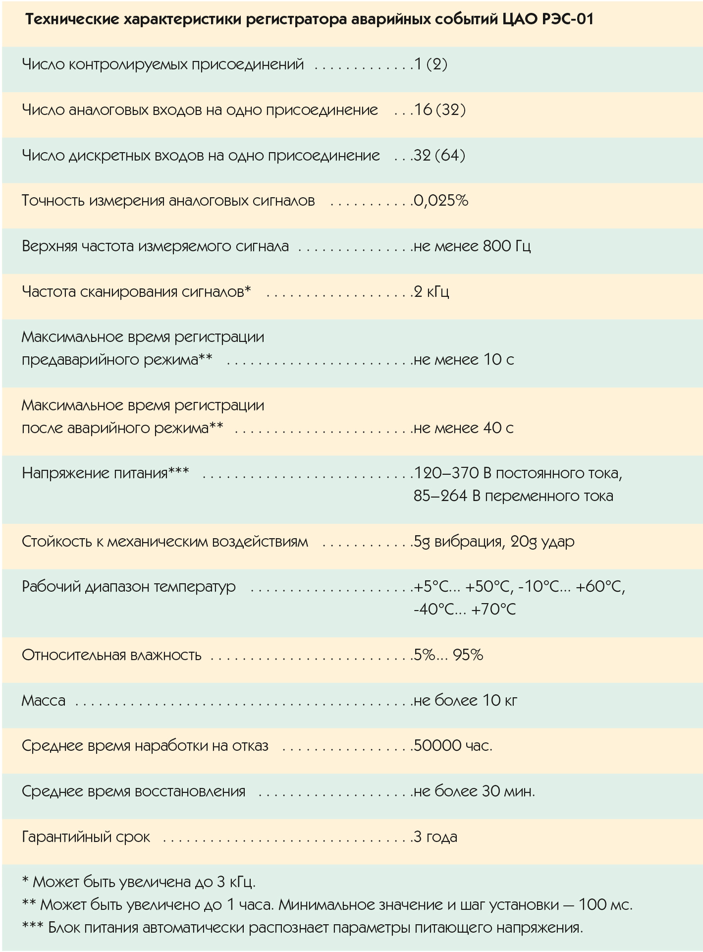 Емкость ЗУ обеспечивает запись процессов с суммарной длительностью не менее 40 секунд (например, 20 аварий продолжительностью по 2 секунды) и может быть увеличена для записи процессов продолжительностью до 1 часа.
