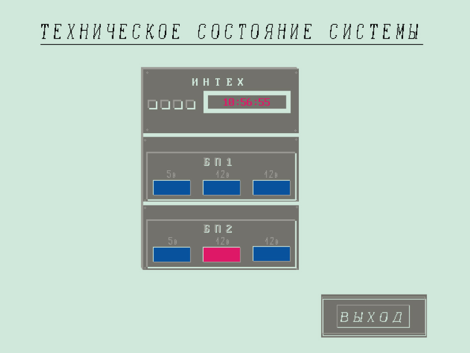 Техническое состояние контроллеров постов наблюдения представлено на мнемосхеме (рис. 6), где отображается наличие или отсутствие выходного напряжения в каждом канале блоков питания контроллера.
