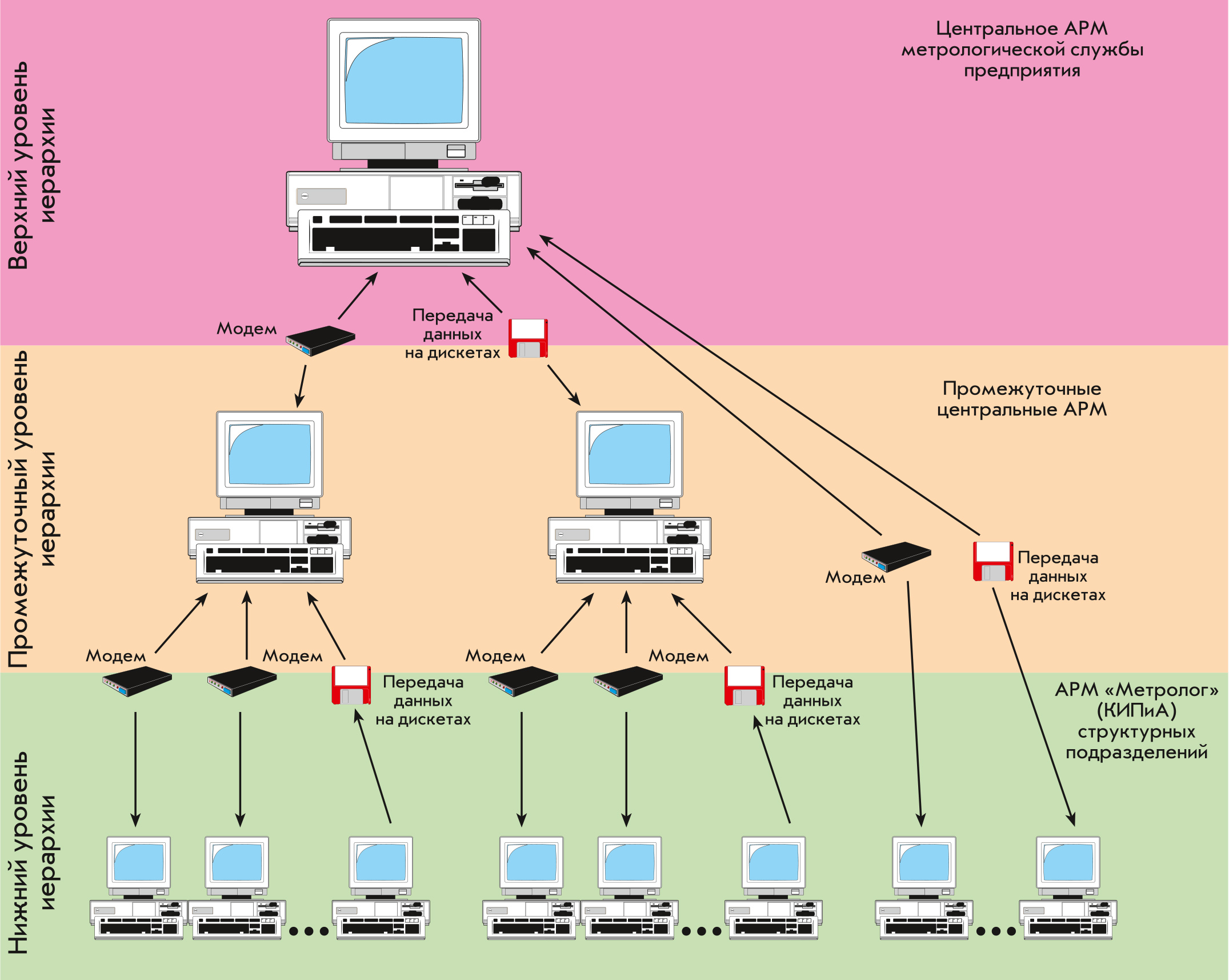 Предлагаемое нами программное обеспечение АСУ МС выпускается в двух версиях. АСУ МС версии 4.1 (АРМ «Метролог» или АРМ КИПиА) — это локальное автоматизированное рабочее место (АРМ), совмещающее в себе рабочие места Главного метролога, инженера-метролога (администратора БД), поверителя, ремонтника, кладовщика. АСУ МС 4.3 — двухуровневая иерархическая система, предназначенная для предприятий, на которых есть удаленные структурные подразделения, типа «Энерго», «Трансгаз», «Транснефть», «Водоканал», а также для заводов, имеющих удаленные цеха, не связанные сетью.Первый уровень иерархии АСУ МС содержит до 100 АРМ «Метролог» структурных подразделений предприятия. На втором уровне находится АРМ Главного метролога (Центральное АРМ, ЦАРМ). Файловый обмен данными между уровнями произ-водится по электронной почте или посредством дискет. В принципе, версия 4.3 может иметь вложенную структуру, то есть любое число уровней иерархии, так как выход АРМ «Метролог», а также вход и выход Центрального АРМ унифицированы. Это обеспечивает вложенную струк-туру системы типа «АРМ Метролог» — ЦАРМ — ЦАРМ. Таким образом, в систему может быть всегда введен про-межуточный уровень обобщения информации и она может наращиваться в любых направлениях.