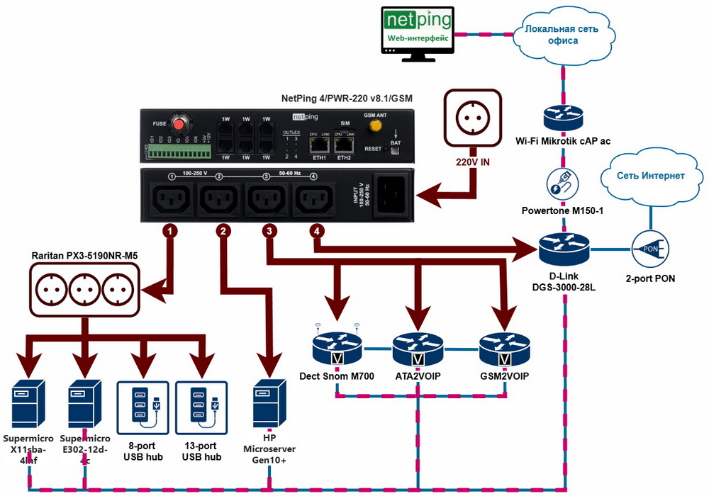 Результаты использования NetPing 4/PWR-220 v8.1/GSM