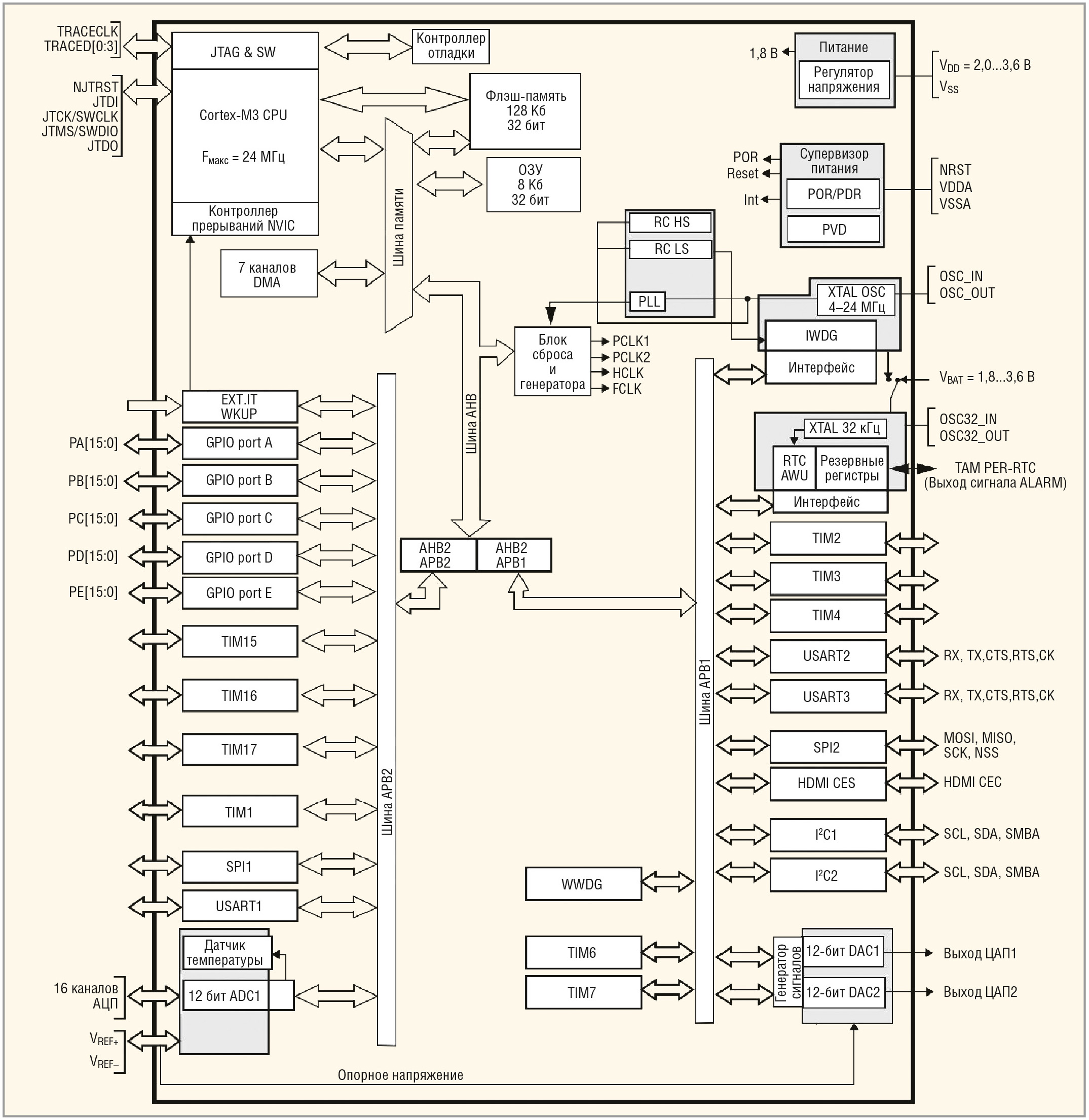 Функциональная схема STM32F100 представлена на рисунке 1.