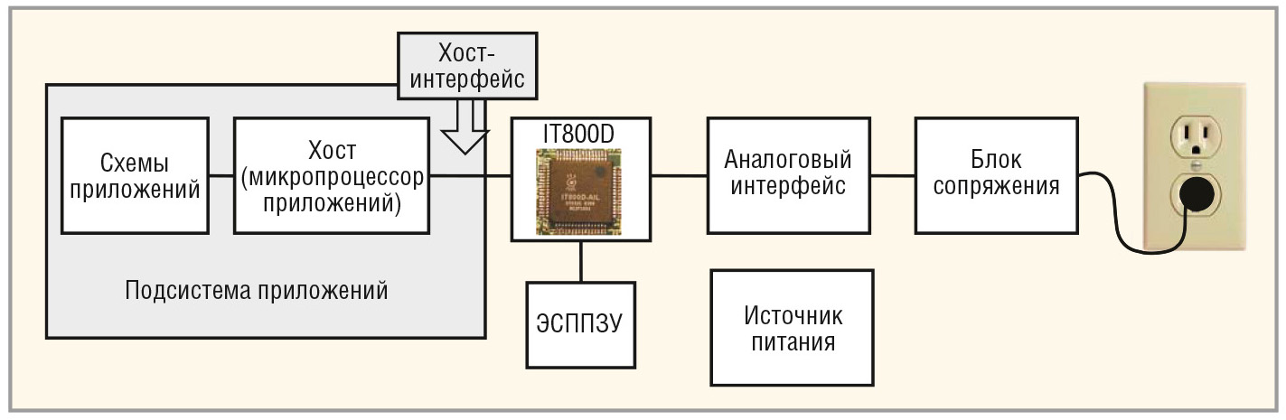 Пример построения канала передачи данных по электрическим сетям на основе СнК IT800D для управления бытовыми приборами показан на рисунке 5.