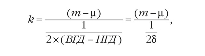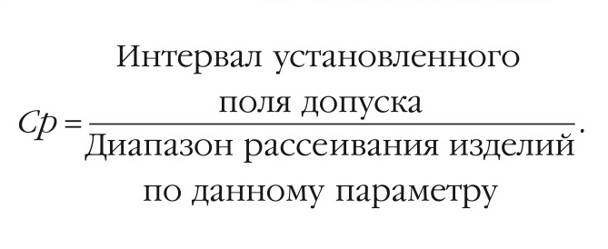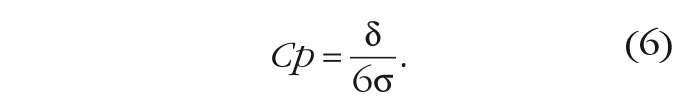 Обычно за интервал поля допуска принимают размах (ВГД – НГД) = δ. Одним из самых распространённых способов оценки диапазона рассеивания изделий по тому или иному параметру является способ 6σ, где σ – так называемое стандартное отклонение. С учётом этих обозначений формула для индекса Ср приобретает следующий вид: