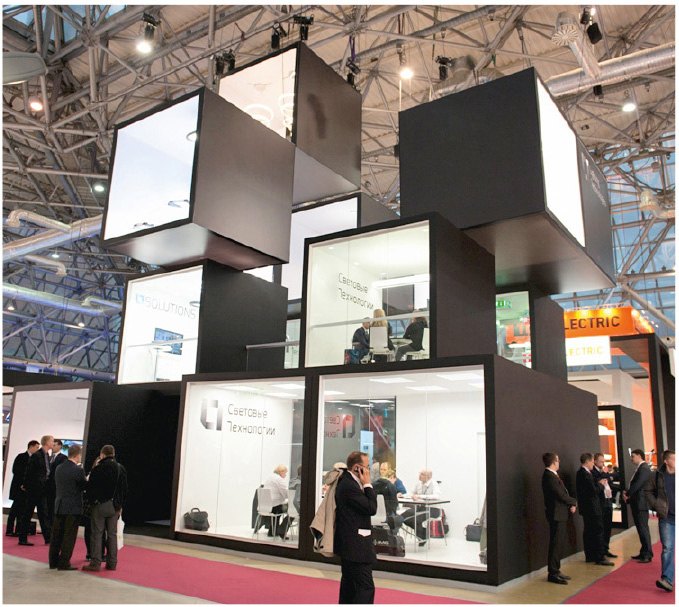 4) павильон № 8 – «Декоративное освещение» (зал 1), «Автоматизация зданий и электротехника» (зал 2) и «Светодиоды» (зал 3);