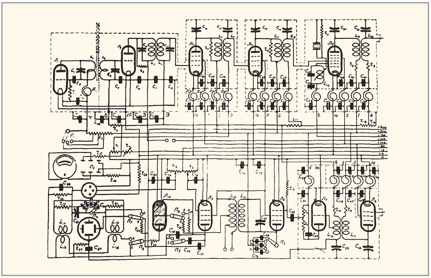 Ещё более совершенную радиолокационную установку в 1935 г. удалось создать в лаборатории Д.А. Рожанского, который, к тому времени, из ЦРЛ перешёл в ЛФТИ. Как следует из его отчёта в 1935 году, в качестве приёмного устройства был применён не сверхрегенеративный приёмник, а супергетеродин с двойным преобразованием частоты (см. рис. 2).