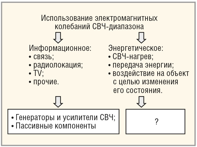 Использование электромагнитных колебаний СВЧ-диапазона можно условно разделить на две группы (см. рис. 1).