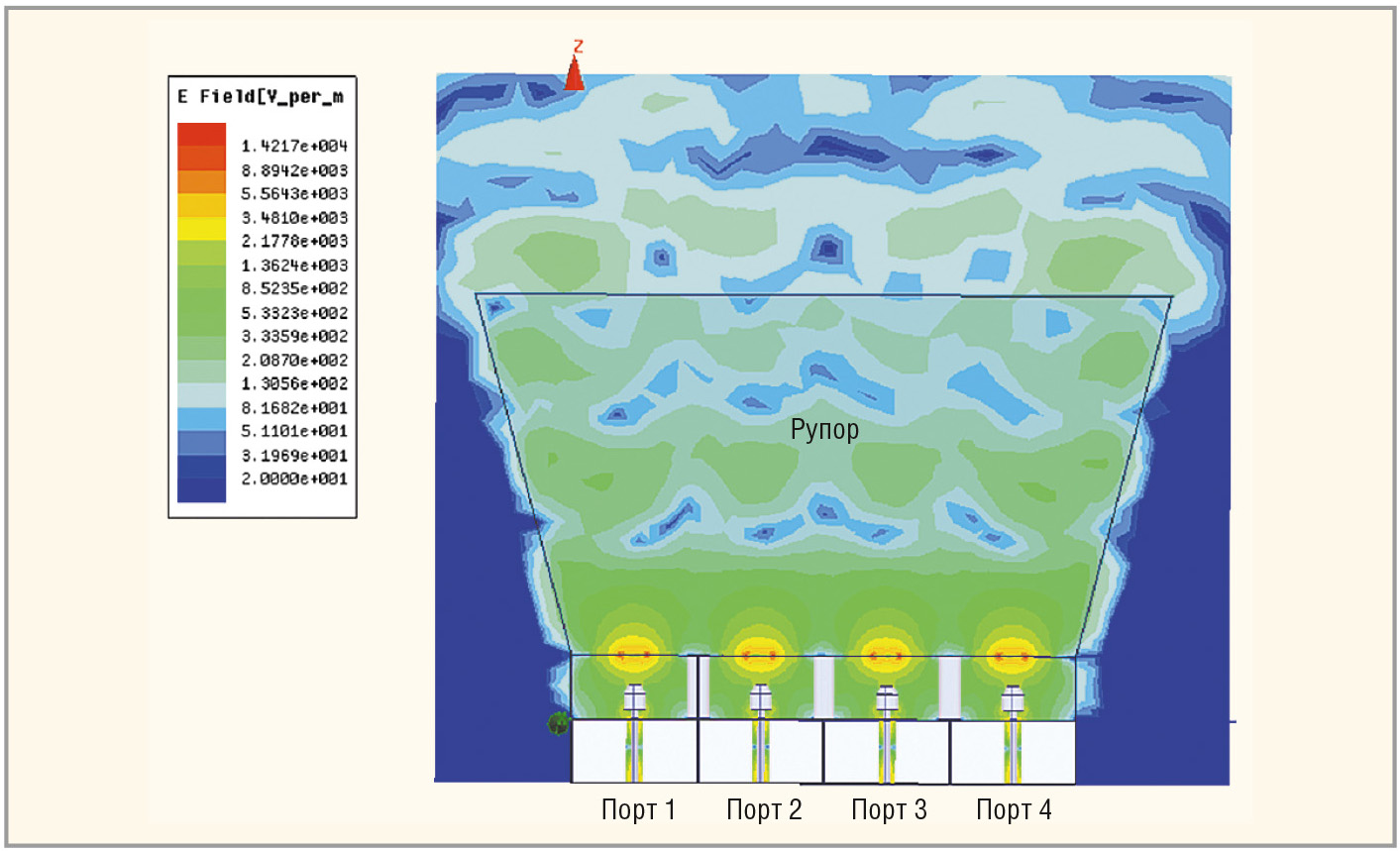 На рисунке 8 видно, что при добавлении рупора ближнее поле в резонаторах выравнивается. Следует отметить, что реализация электродинамических методов моделирования в современных коммерческих пакетах программ [4, 5] переводит проектирование на новый уровень, часто исключая дорогостоящее макетирование и подгонку. Это особенно важно при оптимизации сложных СВЧ-структур, которые одновременно демонстрируют и согласующие, и излучающие свойства.