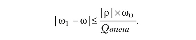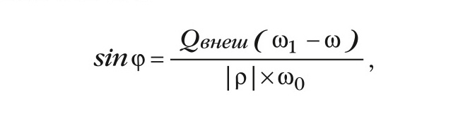 где: φ – мгновенная разность фаз между колебаниями генератора и синхронизирующим сигналом, Qвнеш – внешняя добротность, ρ – коэффициент отражения, ω1 – частота синхронизирующего сигнала, ω – частота свободных колебаний при наличии нагрузки, ω0 – собственная частота колебаний генератора.