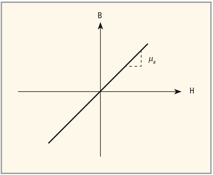 Линейная модель сердечника LINEAR не учитывает его насыщение и описывается линейной характеристикой B(H). Наклон характеристики равен абсолютной магнитной проницаемости материала сердечника μα (см. рис. 3).