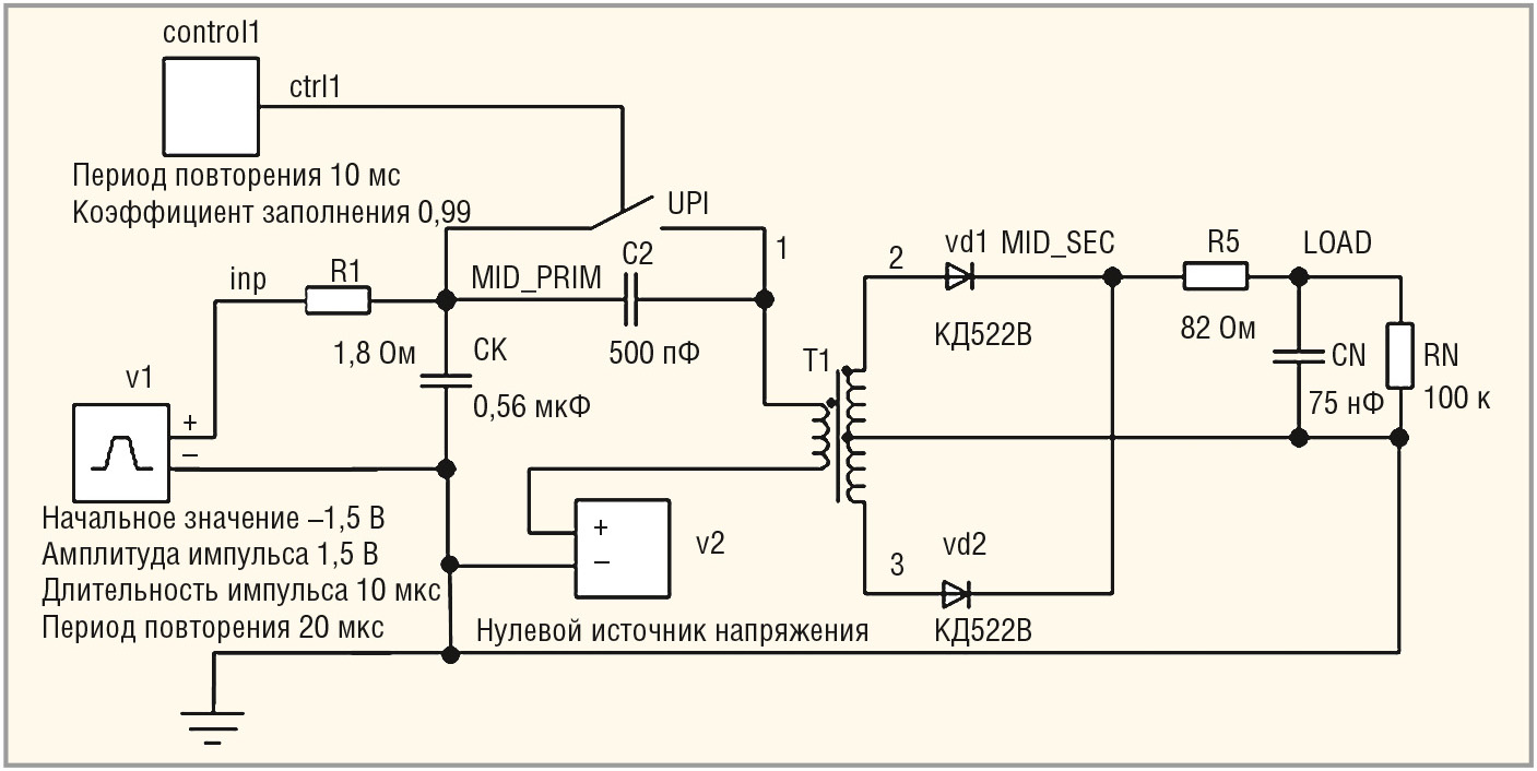 Для верификации макромодели использовалась часть схемы прибора, в состав которого входит трансформатор transformer_1 (см. рис. 7).