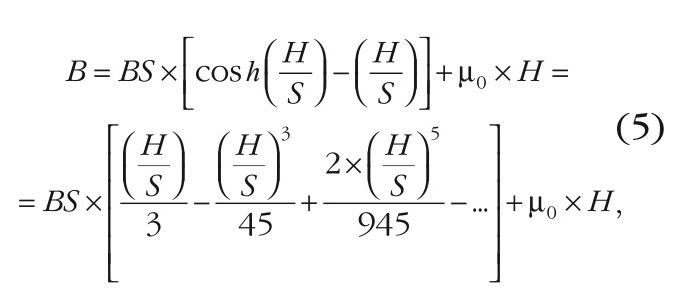 При выборе гиперболической функции магнитная индукция B связана с напряжённостью магнитного поля H уравнением: