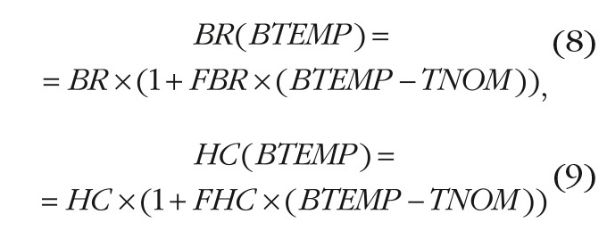 - TBS, TBR и THC – коэффициенты зависимости BS, BR и HC от температуры, 1/K (по умолчанию все эти параметры равны 0);