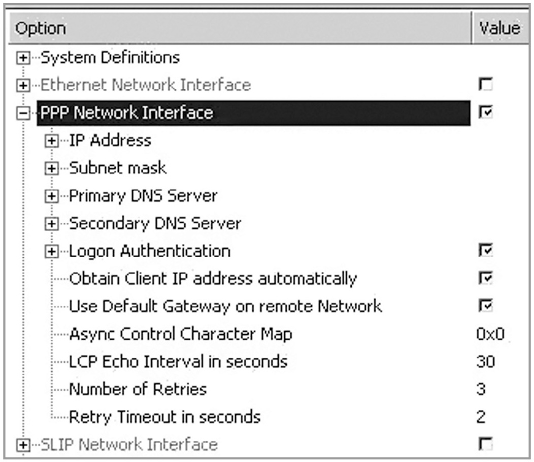 Для начала при необходимости поставим галочку вместо Ethernet Network Interface напротив PPP Network Interface. Далее, открыв меню настроек интерфейса PPP, проверим все остальные параметры (см. рис. 2).