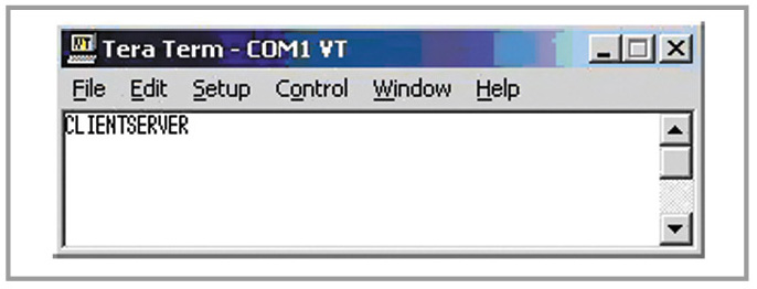 Разработанный проект встраиваемого HTTP-сервера был протестирован с помощью компьютера под управлением Windows XP. При первом старте проекта с помощью терминальной программы плате была отправлена команда CLIENT, на которую плата ответила CLIENTSERVER (см. рис. 4).