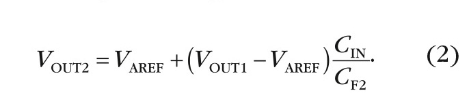 Таким образом, выходное напряжение интегратора X1, CF1 пропорционально разности между ёмкостью датчика CS и ёмкостью опорного конденсатора CREF и слабо зависит от входной и паразитной ёмкости интегратора заряда. Позже, когда потенциал phi2 становится высоким, выходное напряжение PGA (VOUT2) устанавливается на уровне VAREF, а затем программируемый конденсатор CIN заряжается до CIN(VOUT1 – VAREF) через выход интегратора заряда.