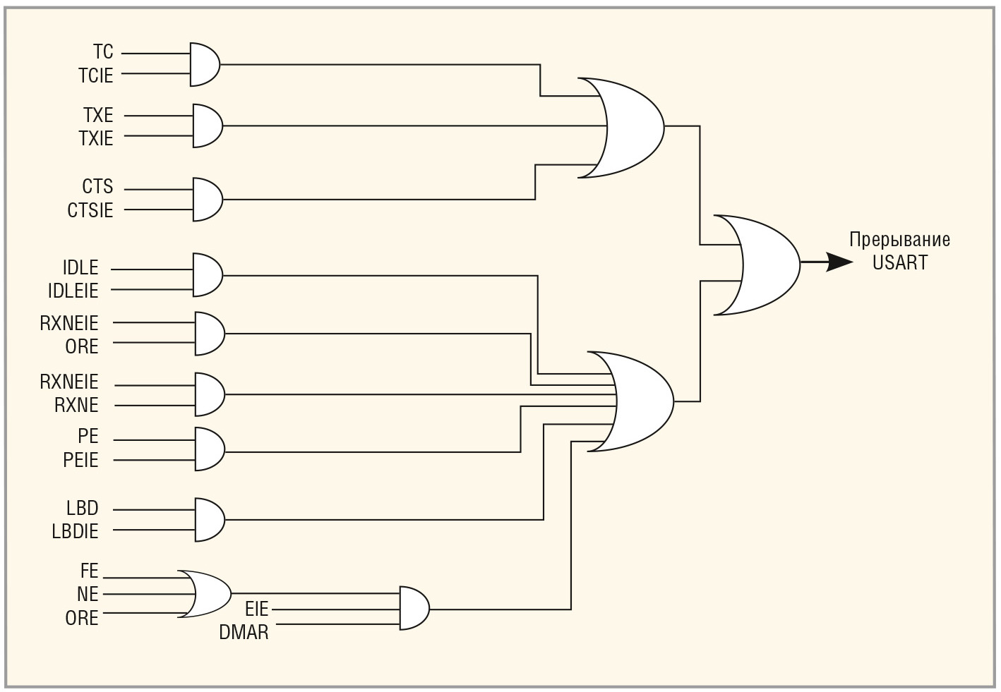 Некоторые разряды регистров USART могут быть использованы для формирования прерывания. Эти разряды представлены на рисунке 4.