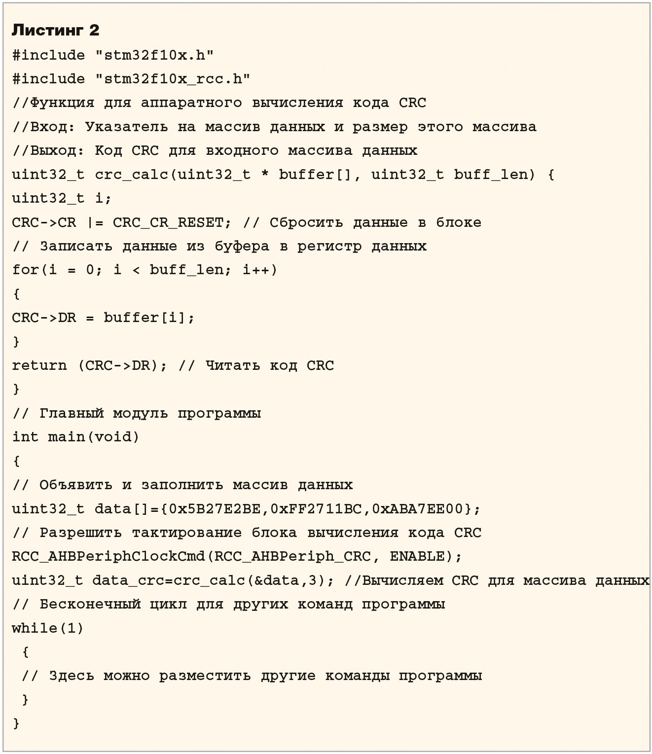 Современные 32-разрядные ARM-микроконтроллеры серии STM32: блок вычисления кода CRC