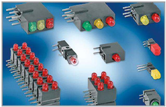 В направлении FEL «Компоненты на печатную плату для лицевой панели» представлены такие продукты, как SMD (THT) кнопочные и тумблерные переключатели, SMD (THT) корпусированные светодиодные модули (с одним, или несколькими индикаторами, диаметром 3 или 5 мм) (см. рис. 3–5), SMD (THT) 7-сегментные дисплеи.