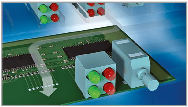 Часто встречаются ситуации, когда необходимо локально осветить места, труднодоступные для обслуживания или находящиеся в зоне повышенной температуры. В начале 2000 года многие компании стали предлагать решения, с помощью которых это стало возможным: были разработаны Light Guides, известные на российском рынке как светопроводники или световоды. Они позволяют располагать светодиоды на удалённом расстоянии от места индикации. Изготавливаются такие элементы из оптически прозрачного материала (стекло, пластик), свет внутри которого переносится посредством полного внутреннего отражения. Как было сказано выше, компания MENTOR GmbH & Co выпустила свой первый светопроводник в 2000 году. В течение последующих лет были разработаны целые системы из световодов, матрицы и компоненты типа M-PIPE (см. рис. 6), более удобные для автоматической установки на плату.
