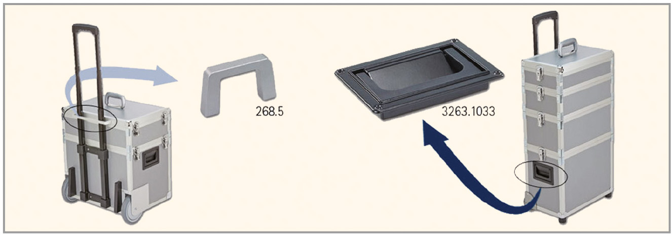 - фирма KKC, занимающаяся производством защищённых чемоданов и кейсов особого назначения, использует в своих изделиях алюминиевые ручки серий 268.5 и 3263.20133 из стандартной линейки (см. рис. 10);
