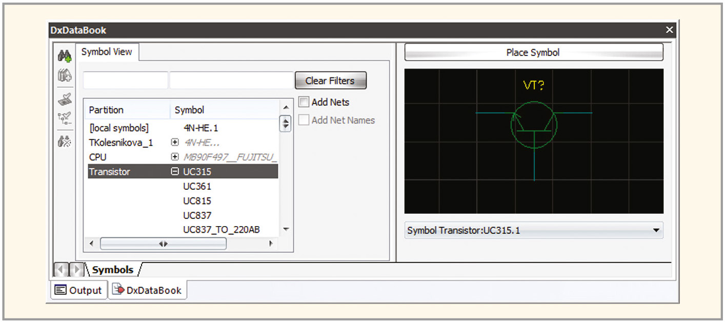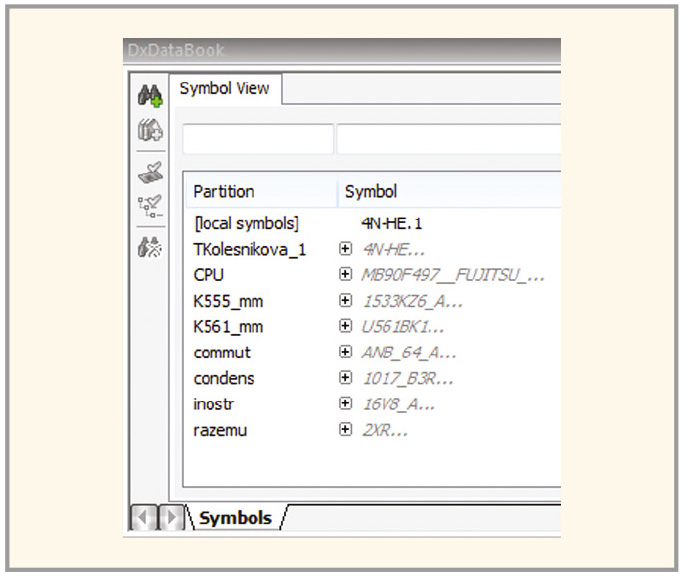 После импорта сторонней библиотеки в проект добавленная библиотека появится в списке библиотек проекта в окне Symbol View в панели DxDataBook (см. рис. 5). Если сторонние библиотеки имеют русские названия, переименуйте их, иначе возникнут ошибки при импорте.