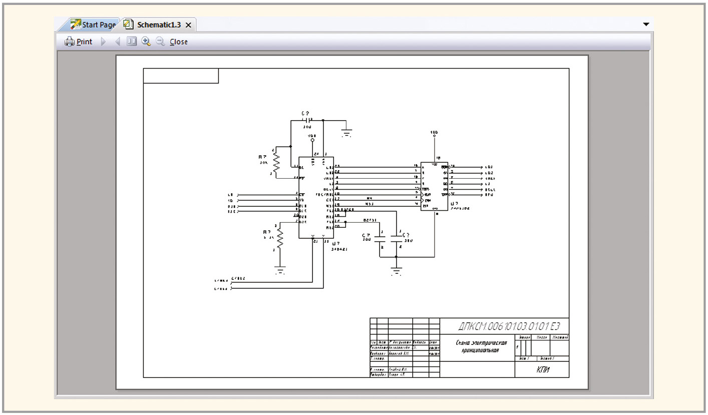 Вывод принципиальной электрической схемы на печать
