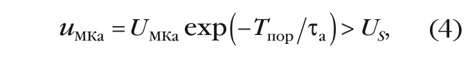 где Тпор – заданное время задержки до момента, где производится сравнение сигнала люминесценции с порогом; τа – постоянная времени затухания люминесценции алмаза; Uмка и uмка – соответственно амплитуда и текущее значение сигнала люминесценции алмаза; Us – напряжение порога обнаружения (по МК).