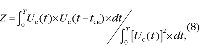 где Uc(t) – функция сигнала от реального времени; Т – период сигнала люминесценции; Z – свёртка, являющаяся, согласно определению [9], автокорреляционной функцией сигнала, которая представляет собой интеграл (в нашем случае в границах периода) от произведения функции сигнала на её сдвинутую во времени копию; tсв – параметр свёртки («сдвиг» копии).