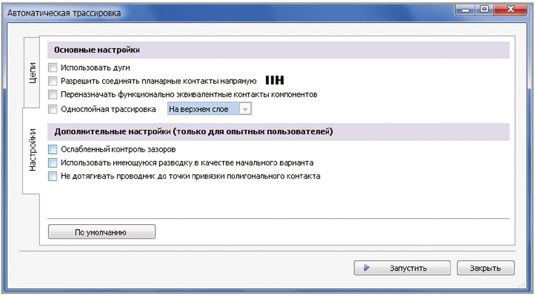 На вкладке «Настройки» (см. рис. 12) присутствуют те настройки автотрассировки, которые раньше находились в редакторе параметров дизайна.