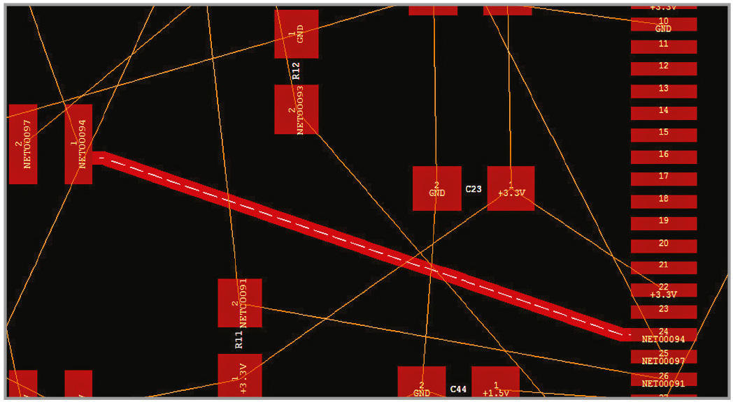 Продемонстрируем это на примере трассировки дифференциальных сигналов. На рисунке 15 показаны две дифференциальные пары, которые разводятся автоматически и без ошибок.