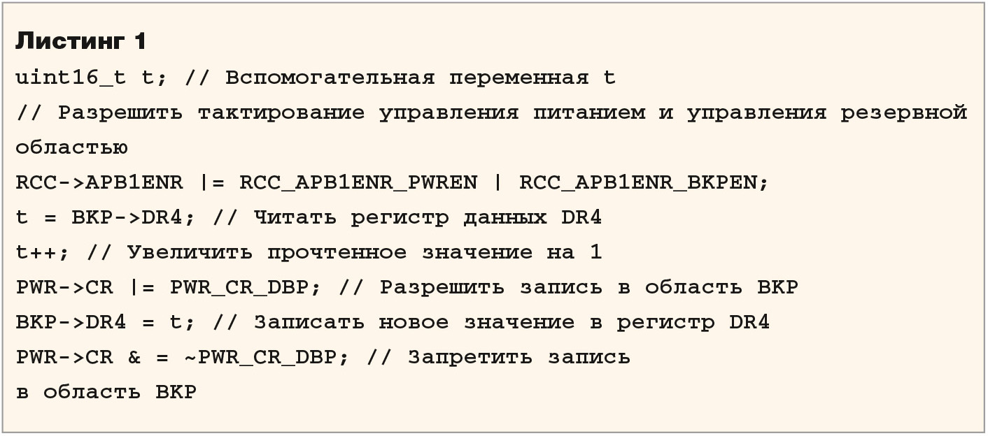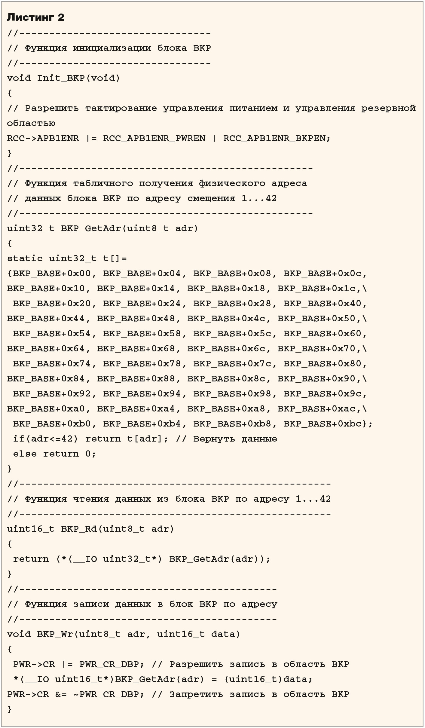 Рассмотрим конкретный пример программы обращения к регистрам резервных данных BKP (см. листинг 1).