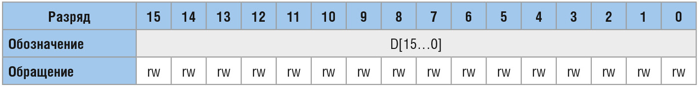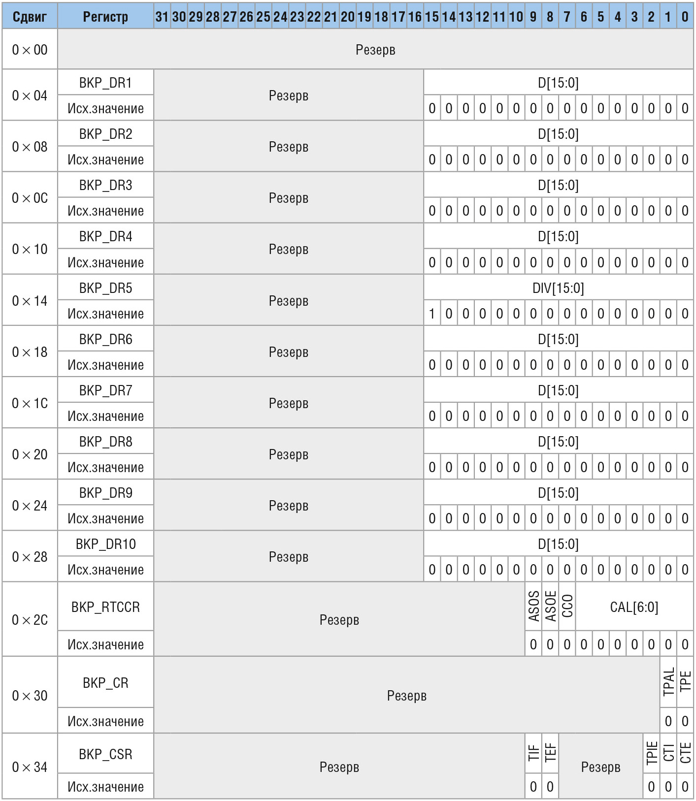 Формат регистров блока BKP с названиями входящих в них разрядов представлен в таблице 1.