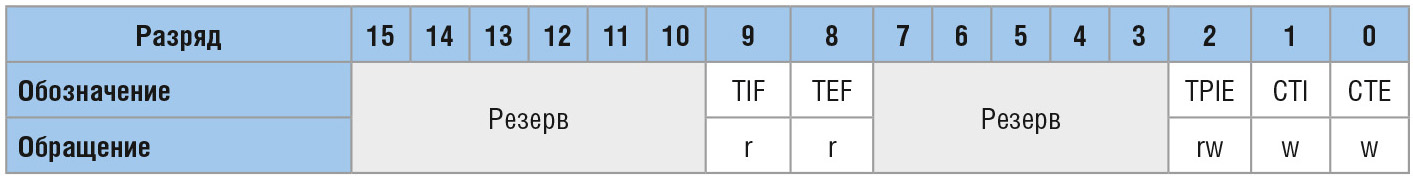Разряд TEF представляет собой флаг события сигнала TAMPER и устанавливается аппаратно, когда обнаружено событие сигнала TAMPER. Сброс этого разряда производится записью 1 в разряд CTE. Состояния разряда означают: 0 – нет событий сигнала TAMPER, 1 – произошло событие сигнала TAMPER.