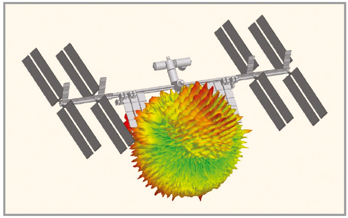 Метод физической оптики является чрезвычайно полезным при решении очень трудоёмких задач электромагнитного излучения и рассеяния, например, больших зеркальных антенн или крупных объектов (самолёты, корабли). На рисунке 2 представлен расчёт диаграммы направленности антенны, установленной на Международной космической станции.