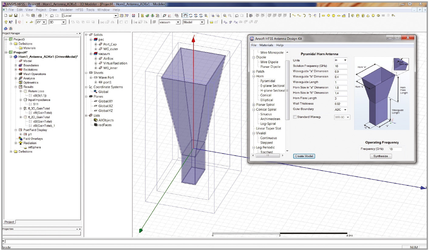 Компания Ansoft (с 2008 года в составе компании ANSYS Inc.) – мировой лидер в области разработки программных решений для электромагнитного анализа радиоэлектронных устройств. За 30-летнюю историю существования компании программный продукт HFSS стал отраслевым стандартом трёхмерного решения прикладных электродинамических задач. Обладая высокими точностью и скоростью расчёта, а также удобством использования, данная система автоматизированного проектирования завоевала популярность у разработчиков во всём мире. В последней версии программного продукта ANSYS HFSS [1] предложен комплексный подход к процессу трёхмерного моделирования антенных и СВЧ-устройств.